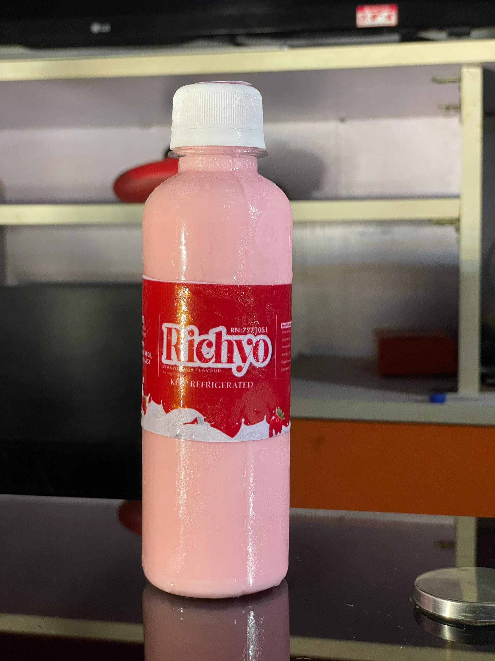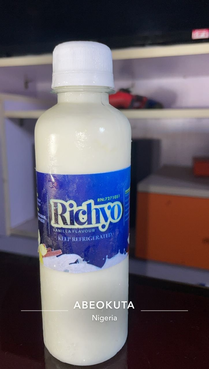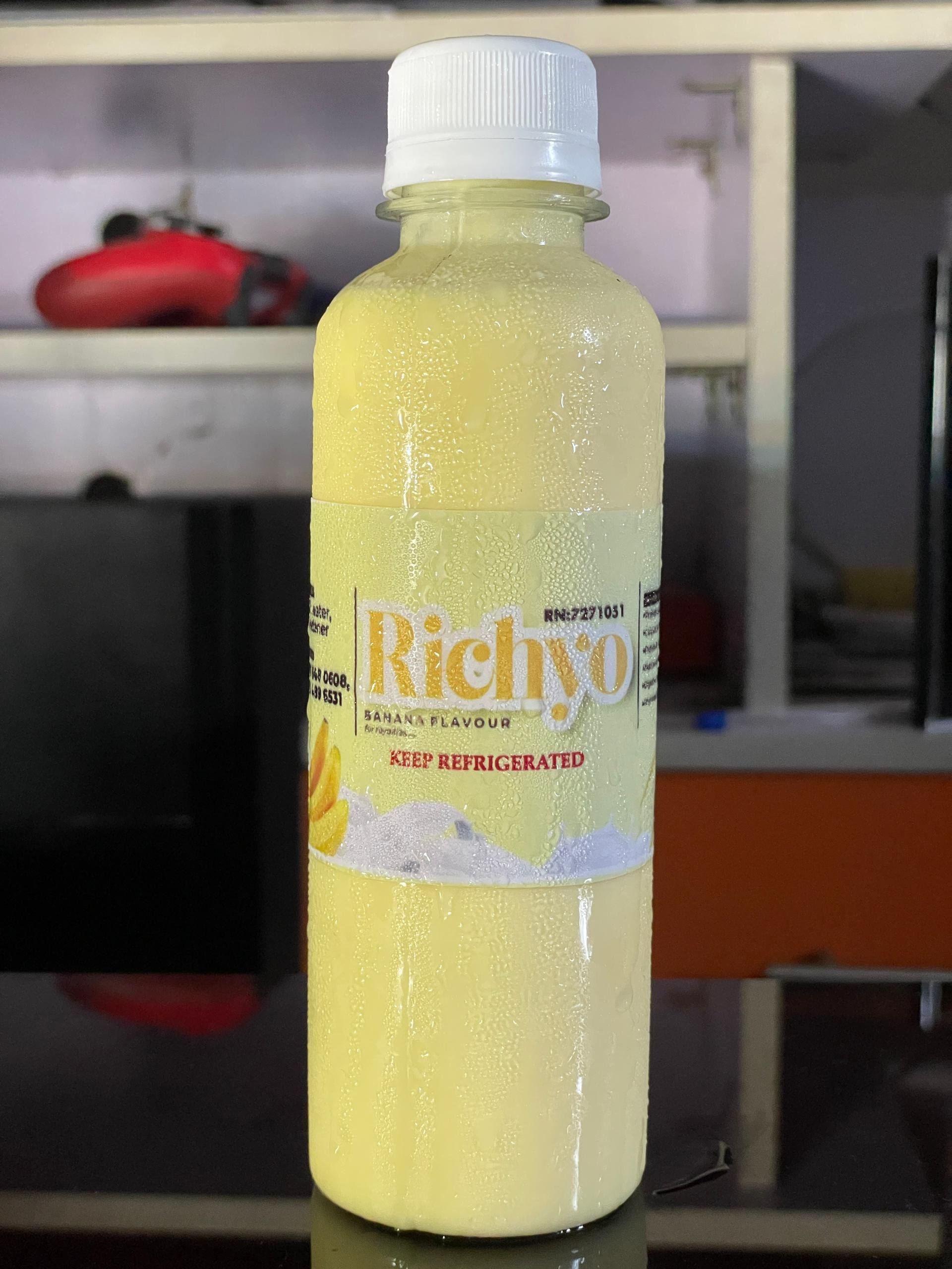 Richyo Yoghurt, available in Vanilla, Banana, and Strawberry Flavours
